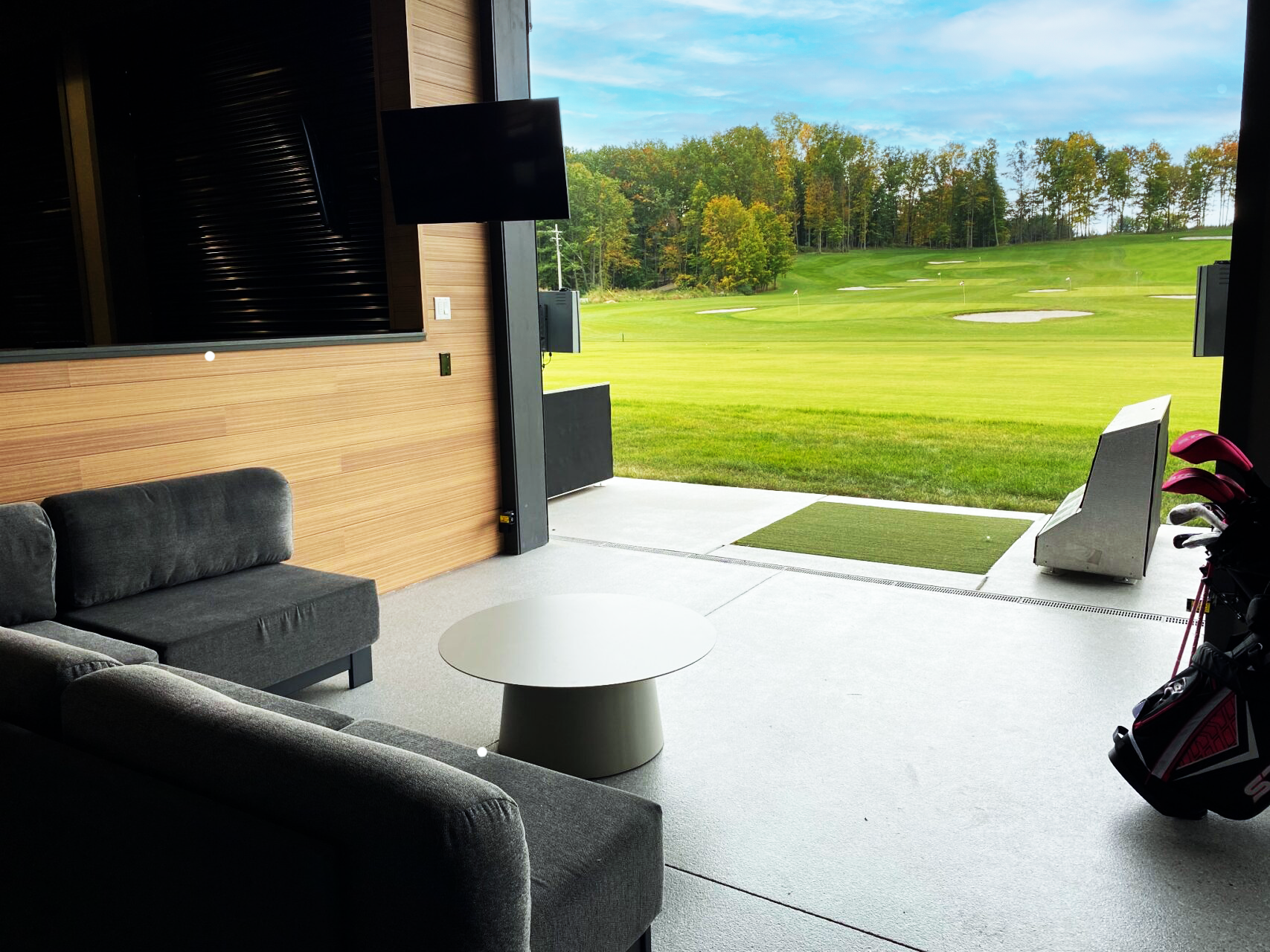 The Bunker offers eight heated Top Tracer bays with precise shot data and year-round virtual golf, plus an outdoor range just steps away for extra practice.